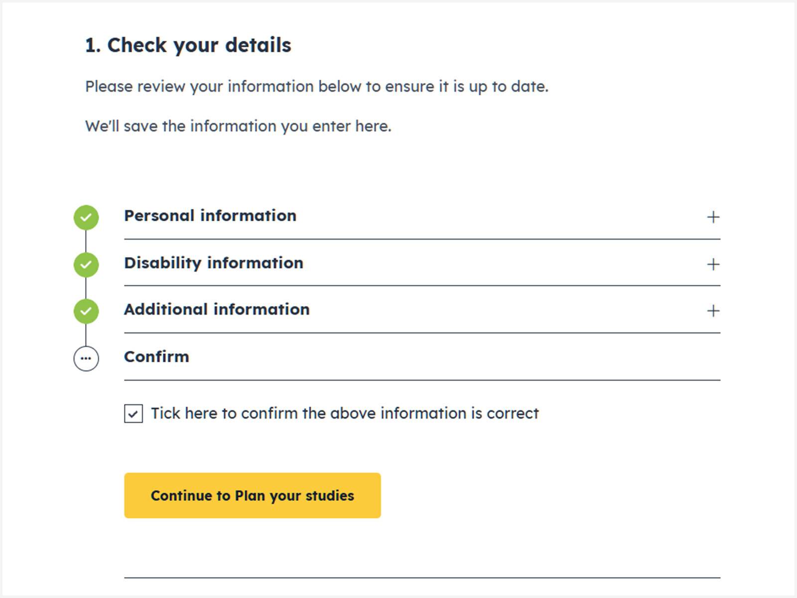 Tick to confirm you’re happy with your courses and schedule, and progress to the payment section.