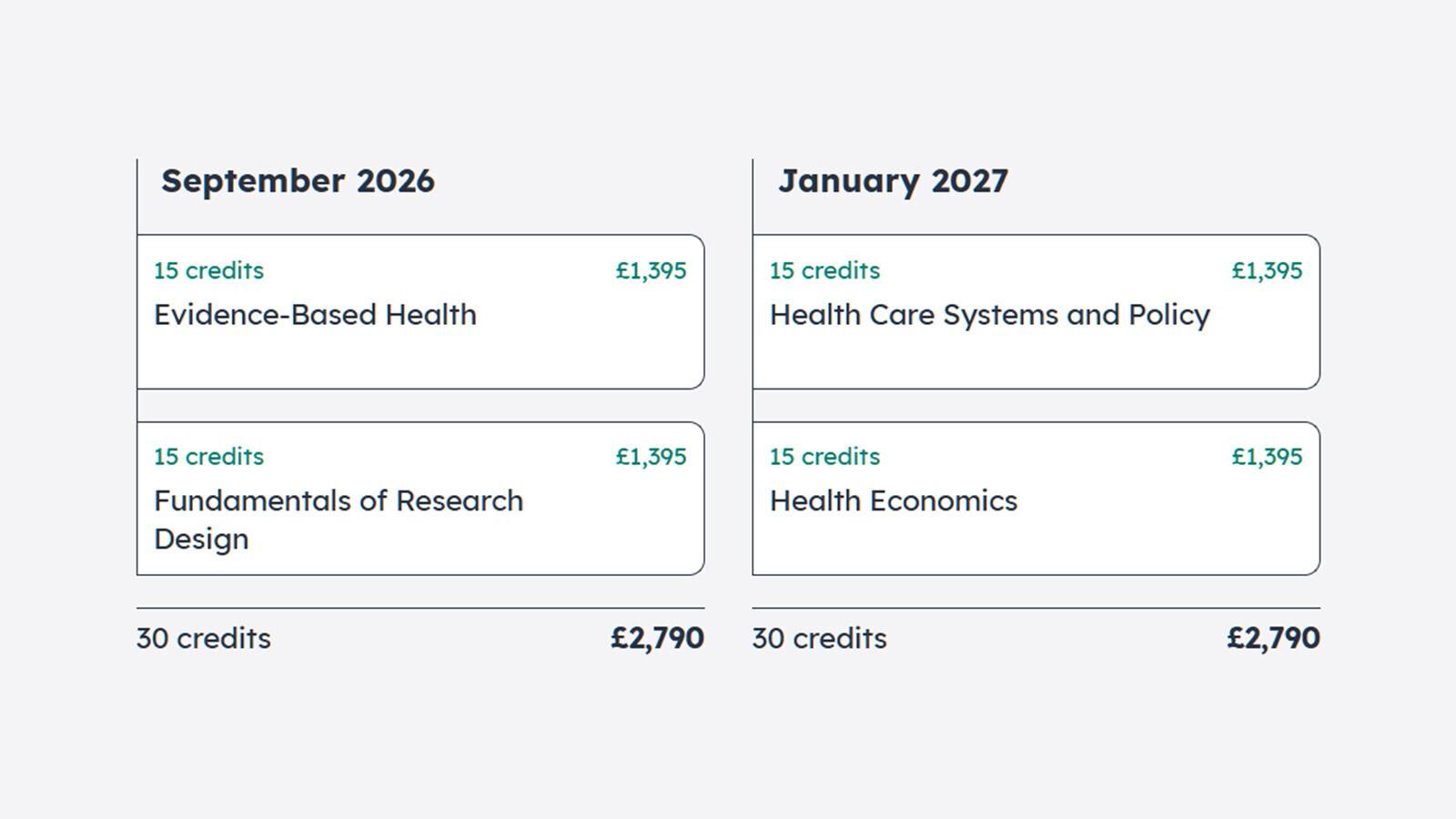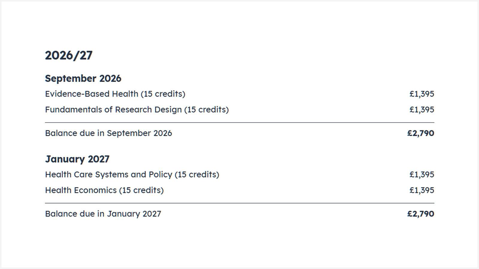Once you have added enough courses to make up the number of credits required for your qualification, you can view a detailed study schedule and personalised cost breakdown for your studies.